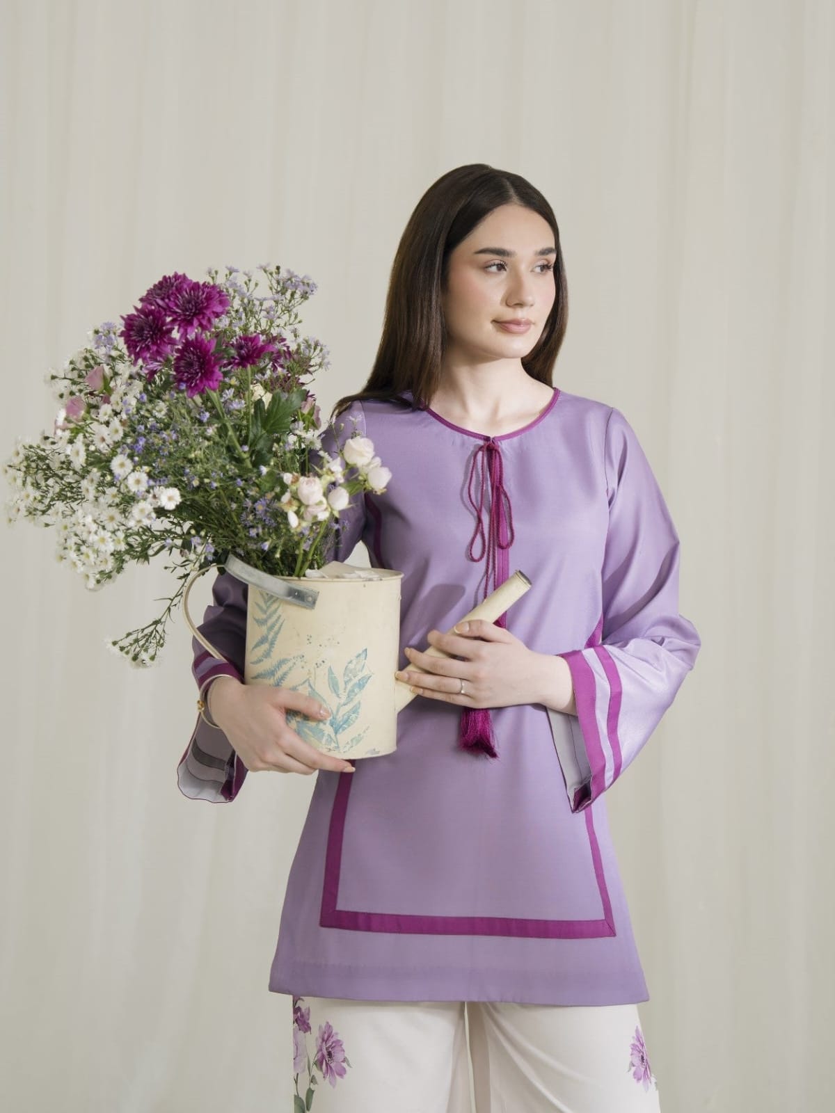 Details: Bell-shaped sleeves with purple pat-ti gives a stylish and graceful touch.